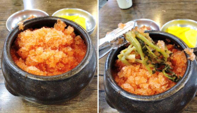 2인분을 시키니 작은 항아리에 담겨 나왔다